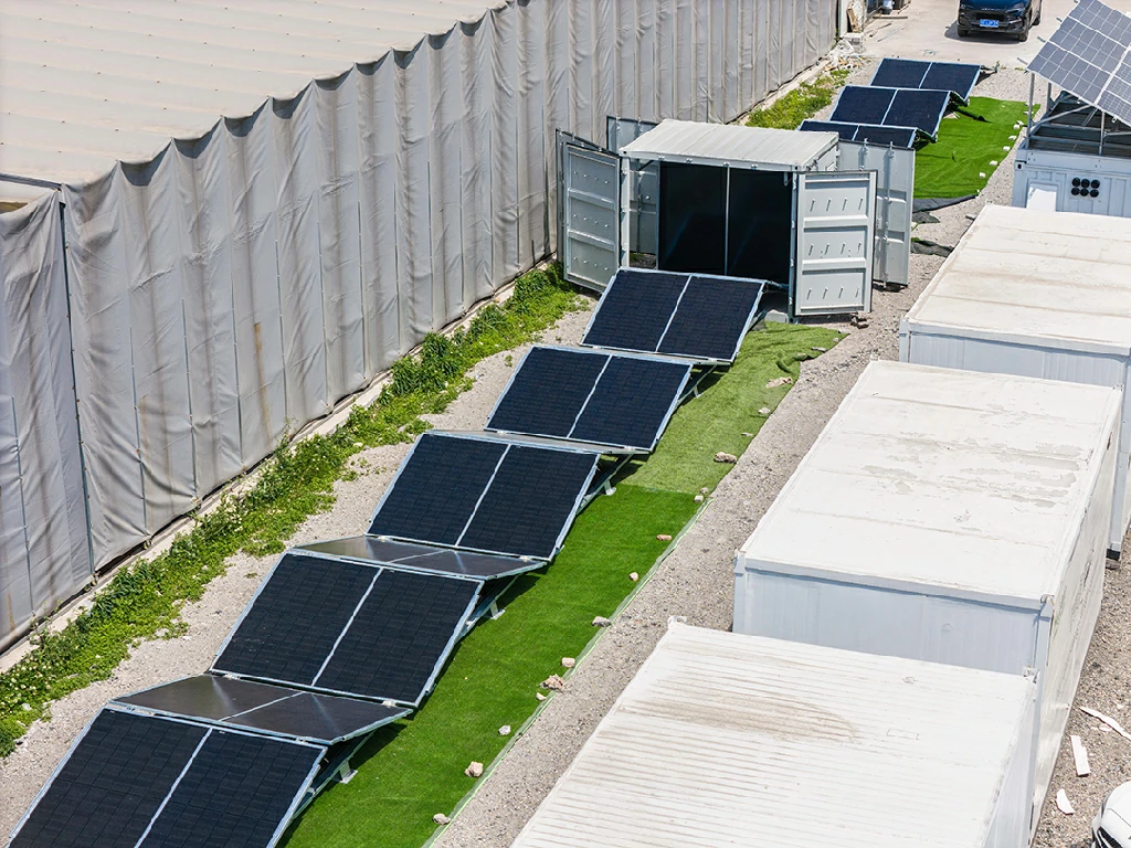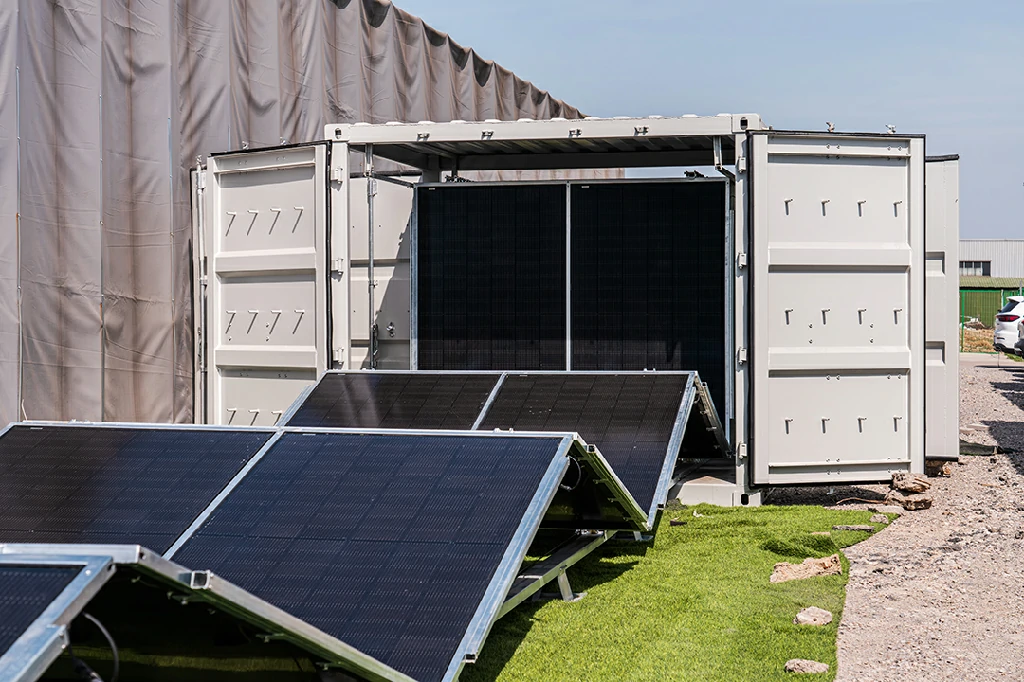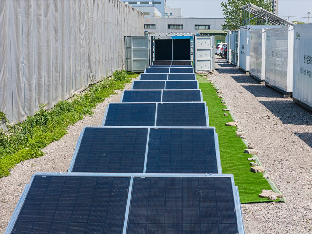 The project is configured with 4 sets of 10-foot 46KW photovoltaic folding containers + 5 units of 215 kWh energy storage cabinets.
