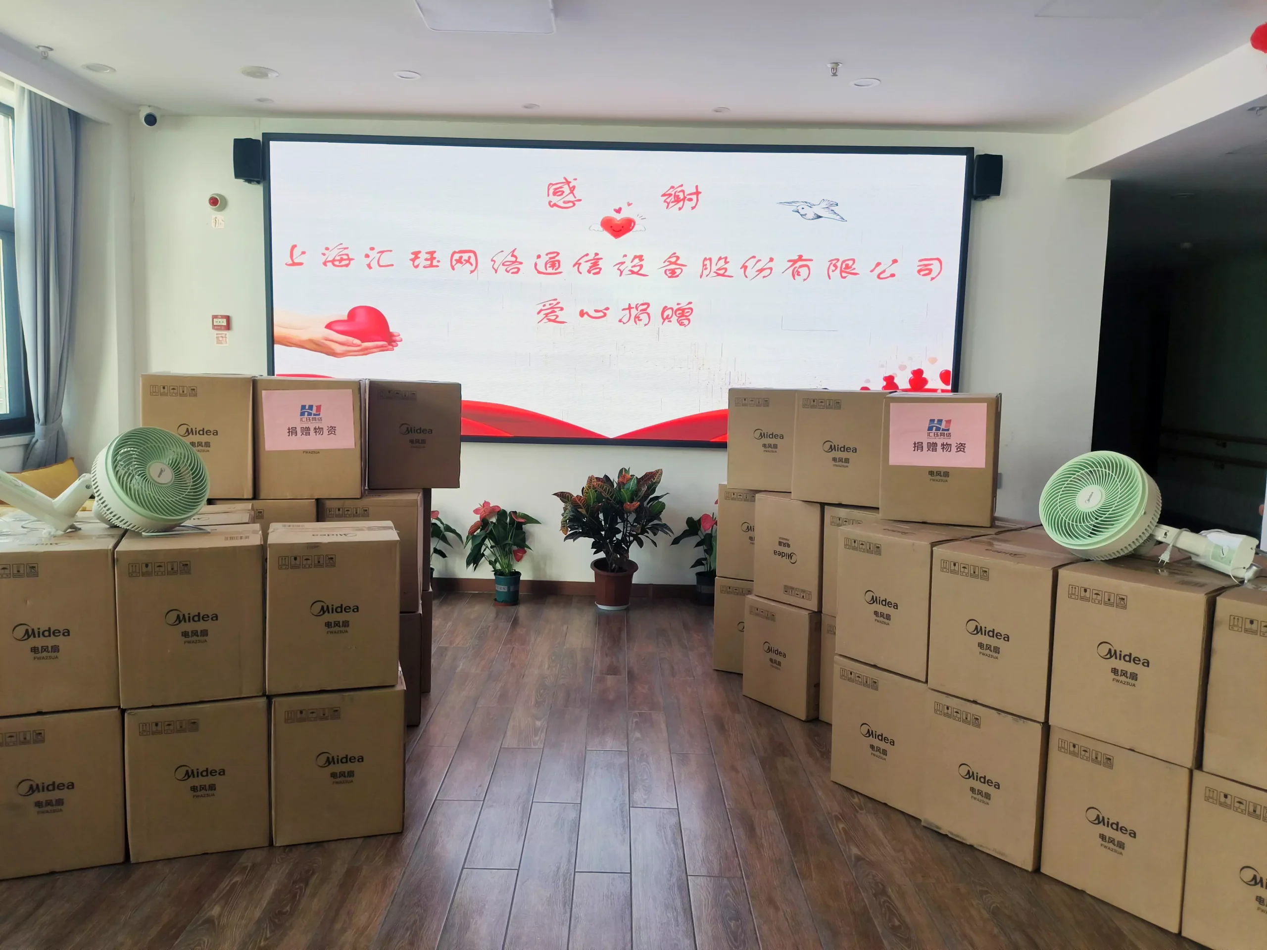 ▲ Electric fans donated by Huijue Group