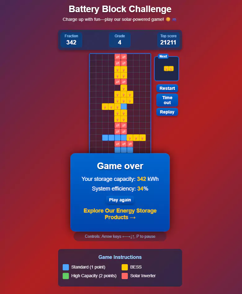 Photovoltaic energy storage, "Tetris". Charge up with fun—play our solar-powered game! ☀️🎮